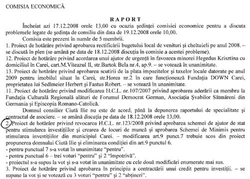 Am să redau in continuare succesiunea hotărârilor Consiliului Local şi a Proceselor Verbale ale comisiei Economice dar şi ale şedinţelor de CL,lăsându-vă pe Dvs.,cititorii, să trageţi concluziile,să analizaţi dacă afirmaţiile lui Eugen Kovacs sunt sau nu adevărate.