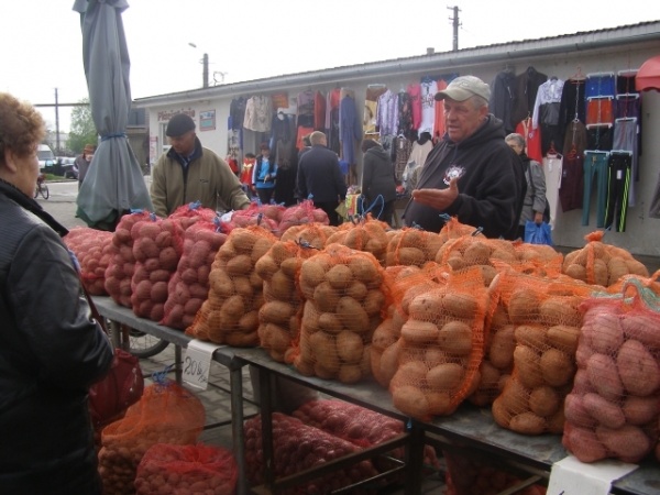 Cartofii se vand cu 1,5 lei kg şi 2 lei.