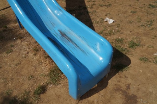 În locul plăcilor de corindon care să atenueze căderea prin alunecare de pe tobogan, urmăriţi ce găsim în realitate!