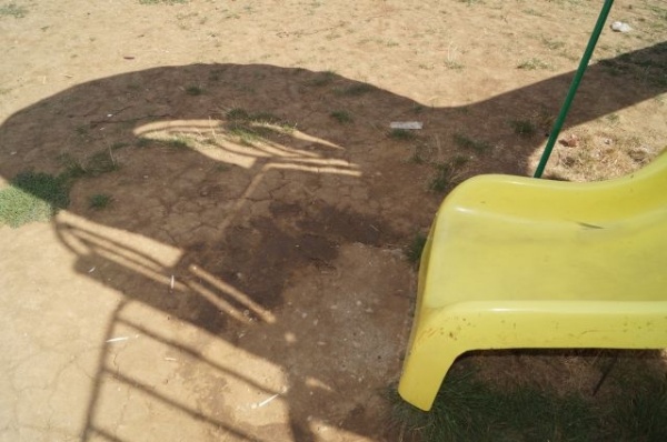 Ironici şi perverşi, executanţii au lăsat în faţa locului de joacă o imagine a ceea ce trebuia să fie lucrarea finală.