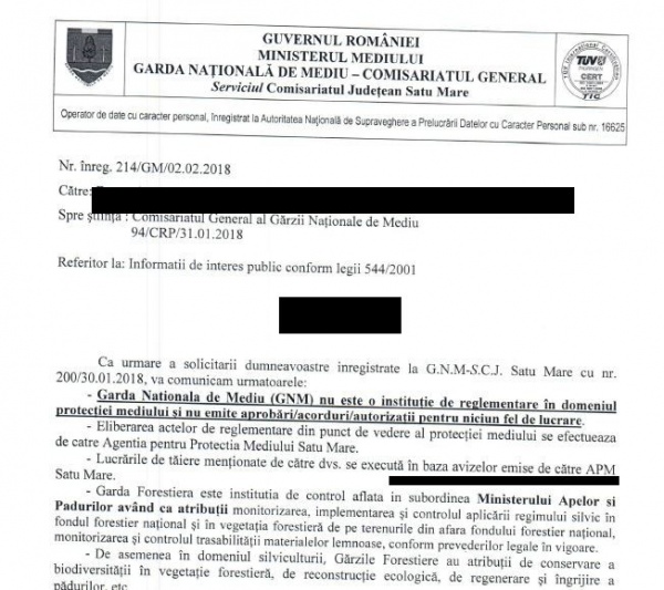 Priviţi cele două adrese emise de Garda de Mediu Satu Mare pentru aceeaşi solicitare dar la două date diferite. Între timp tăierile din parcul dendrologic Carei distrug  alţi arbori sănătoşi pentru că nu respectă normele de tăiere în spaţii protejate. De neînţeles cum instituţiile care ar trebui să protejeze mediul sunt  atât de distante şi neimplicate când vine vorba de …UATM Carei.