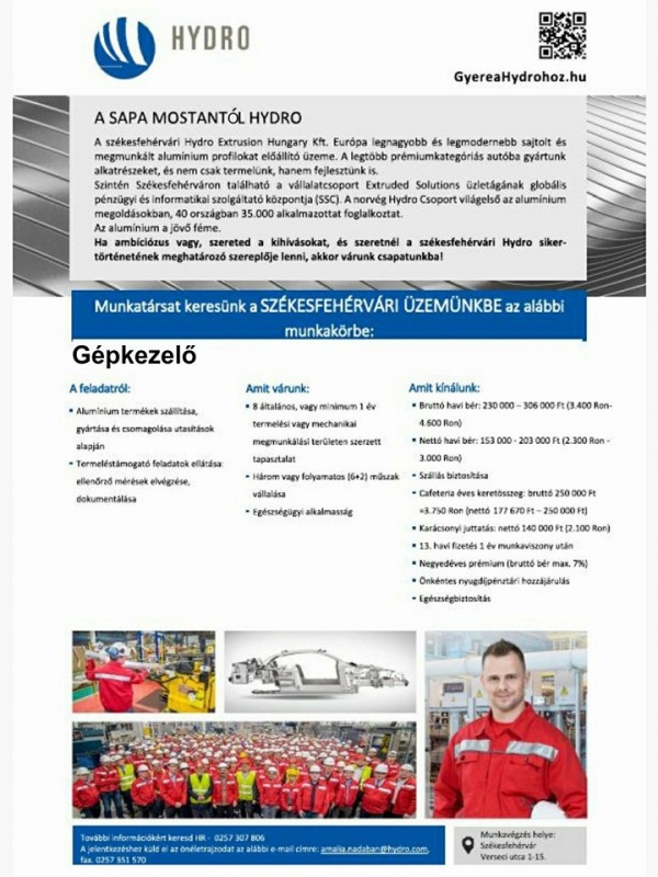 O societate din Ungaria caută colaboratori din Carei pentru uzina din Szekesfehervar cel mai mare producător de profile presate şi prelucrate din aluminiu.
