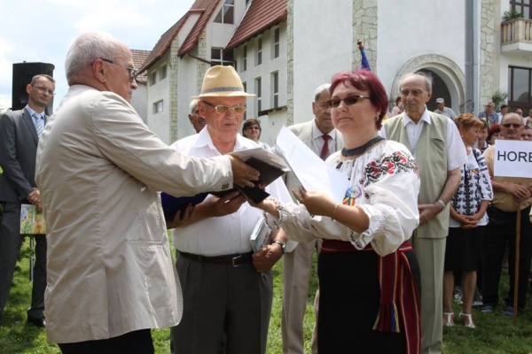 La eveniment a participat şi acad.Mircea Cosma, preşedintele societăţii Mihai Viteazu din Ploieşti. Domnia sa a ţinut o adevărată lecţie de istorie apreciată cu ropote de aplauze. A acordat apoi o preţioasă plachetă şi o Diplomă de Excelenţă Asociaţiei foştilor refugiaţi şi expulzaţi din 1940, Filiala Carei pentru eforturile depuse în amplasarea acestui important simbol al istoriei românilor din acest colţ de ţară în scopul creşterii prestigiului neamului românesc.