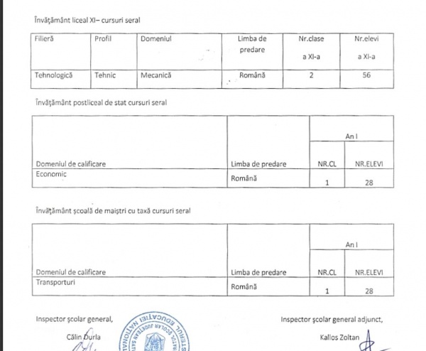 Din anul următor au apărut clasele profesionale cu predare și în limba română dar cele de tip DUAL au rămas pe mai departe doar în limba maghiară.