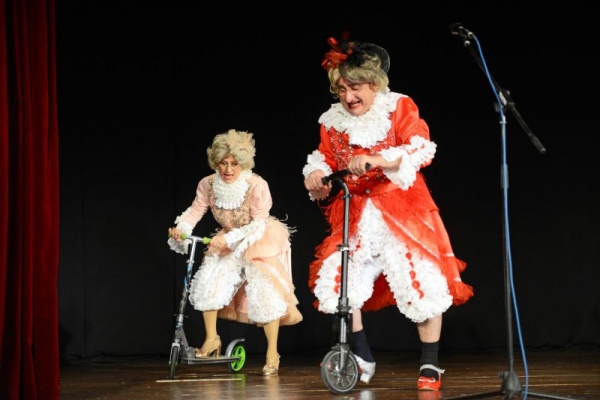 Aplauze la scenă deschisă pentru umoriștii Vasile Muraru și Valentina Fătu la Teatrul Municipal Carei