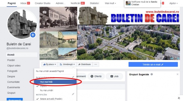 Până și abonații care au dat like paginii de facebook Buletin de Carei și care și-au setat să vadă cu prioritate noile postări făcute pe această pagină (n.r. -”Vezi mai întâi”), nu mai primesc în news feed postările noi  și sunt nevoiți să se ducă personal pe pagina Buletin de Carei pentru a vedea noile articole postate.
