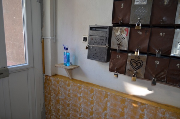 În paralel, angajații Primăriei Carei au montat în fiecare casă de scări suporturi din lemn pe care sunt amplasați recipienți cu soluții dezinfectante.