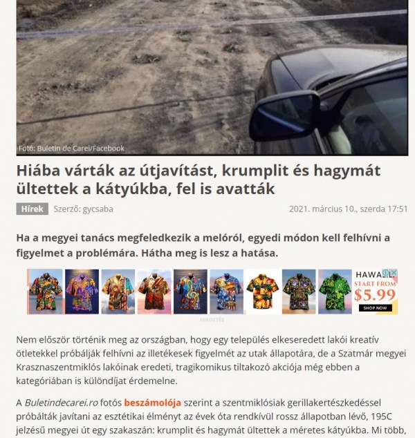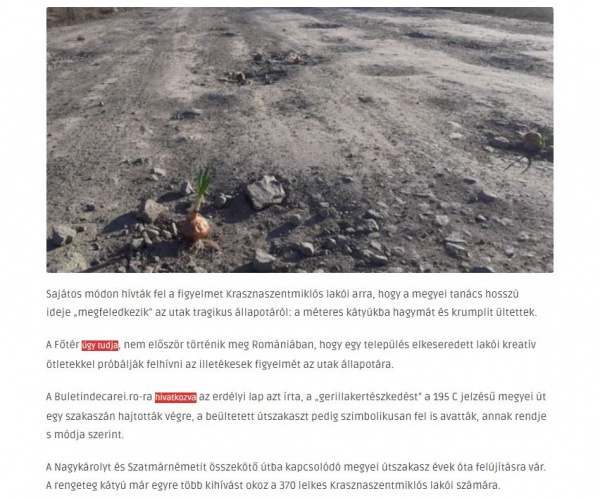 Presa din Ungaria este mai receptivă la situația drumurilor din județul Satu Mare decât Consiliul Județean al cărui președinte este Pataki Csaba, cel ce era mereu prezent la Carei în campanie electorală și sfida realitatea cu afirmațiile sale. Pe drumurile județene spre Sânmiclăuș și Hotoan sau Țara Codrului nu a direcționat mașinile de la Consiliul Județean cu care circula de frica creșterii decontului pentru piese de schimb probabil.