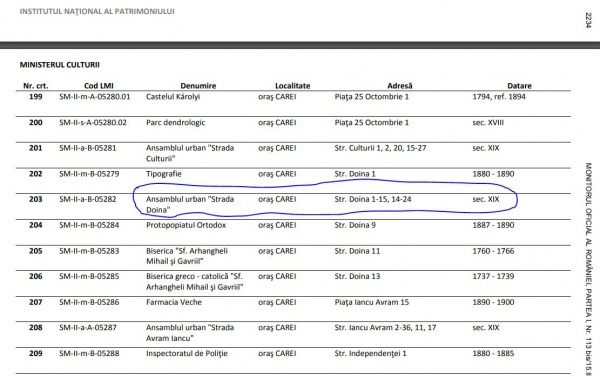 Odată trecute alegerile locale, Primăria Carei a solicitat plata datoriilor la utilități pentru asistații sociali de pe strada Doina. Imobilul în care Primăria Carei a introdus  zeci de familii de asistați sociali este un imobil ce face parte din categoria Monument Istoric. Pentru conducerea exclusiv UDMR a municipiului Carei legea nu se aplică.