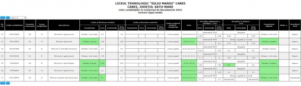 Două medii peste 8 au obținut și elevii de la Liceul Tehnologic Iuliu Maniu unde procentul de promovabilitate a fost de 62,16%. Au promovat 23 de elevi din 37 înscriși.
