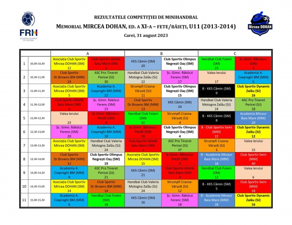 S-a încheiat prima zi a Memorialului Mircea Dohan, ediția a XI-a. Cei mai tineri handbaliști și handbaliste au intrat astăzi în competiţie şi au dovedit că sunt bine pregătiți, regăsind bucuria jocului în meciuri unde s-a ținut scorul dar nu s-a întocmit clasament final.
