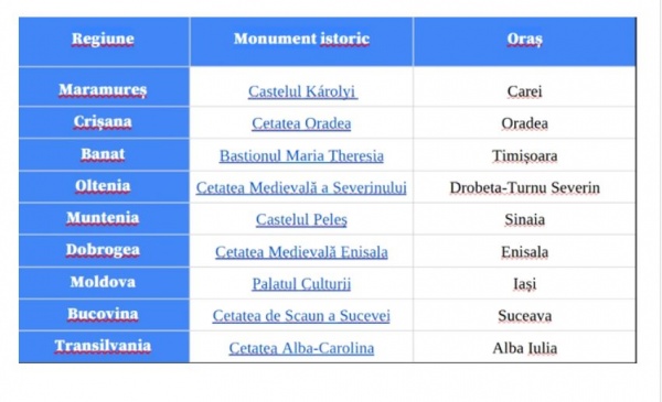 Câștigătorii din fiecare regiune istorică a României au fost locațiile cu cele mai mari numere de recenzii pozitive și un rating de peste 4,5 stele în categoriile castele, palate, cetăți și fortărețe.