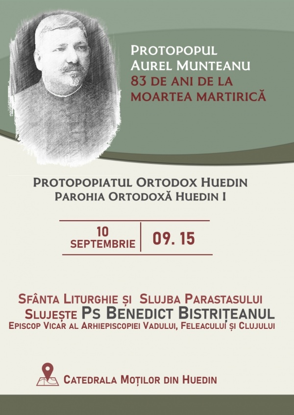Protopopiatul Ortodox Huedin a organizat în acest an un eveniment comemorativ în memoria protopopului ortodox român Aurel Munteanu, la 83 de ani de la moartea sa martirică. „Catedrala Moților” din Huedin este ctitoria protopopului ortodox român Aurel Muntean, cel ucis cu o ferocitate de o barbarie de neînchipuit pentru că: