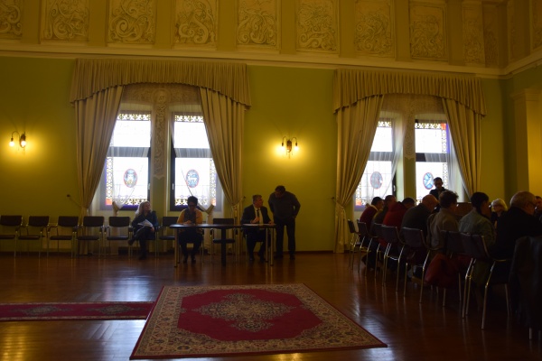 Ședința a avut loc în Sala Festivă care e și sală de căsătorii pentru că nu există nicio altă sală alocată pentru ședințele Consiliului Local. Nici de această dată nu a existat sonorizare.