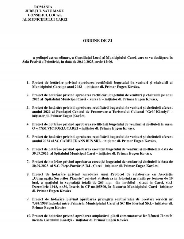 Nimic despre proiectul rectificării bugetare la CSM Victoria, la Spital sau la Fundația de promovare a turismului cultural, NIMIC despre execuția bugetară la Piața agroalimentară unde a existat o deturnare de fonduri pe care prim procurorul de la Parchetul Carei nu vrea să o cerceteze.
