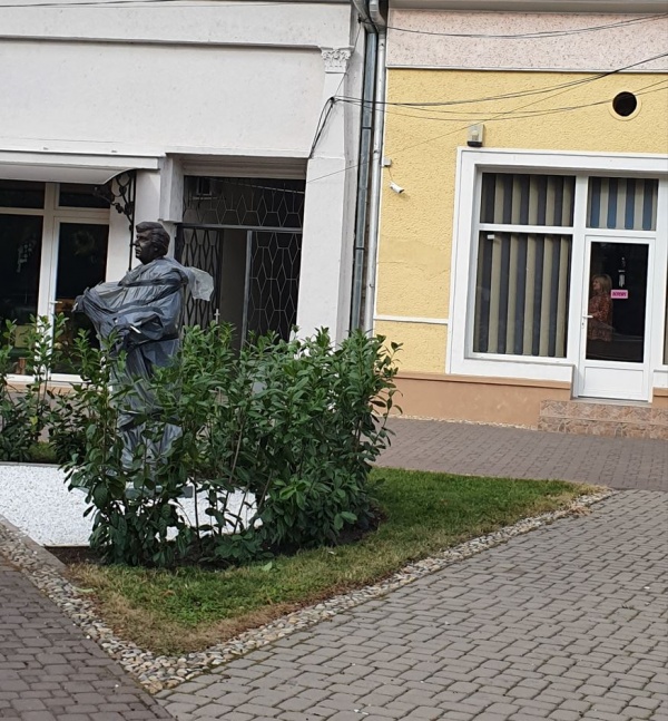 La Carei se dezvelește statuia fără soclu a unui pictor român. Toate statuile din jur sunt puse în valoare pe soclu