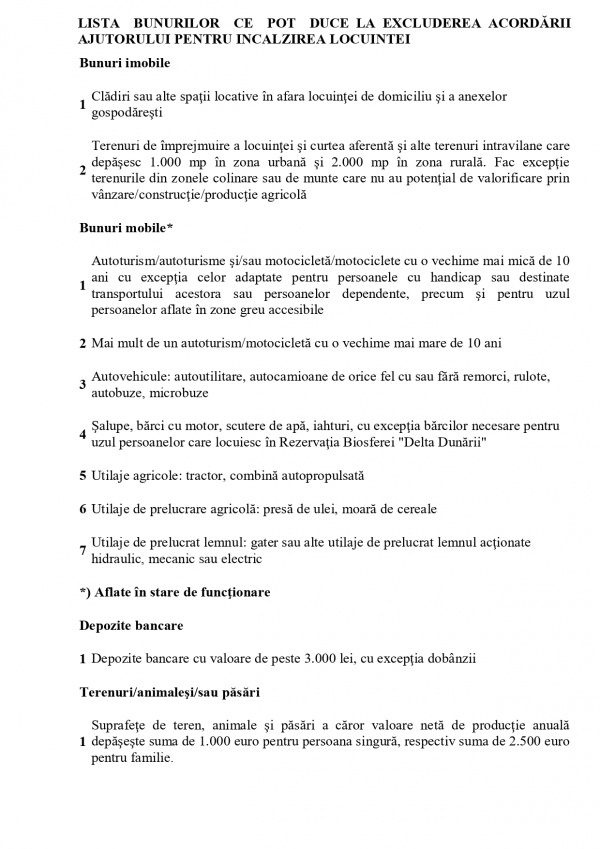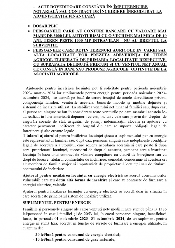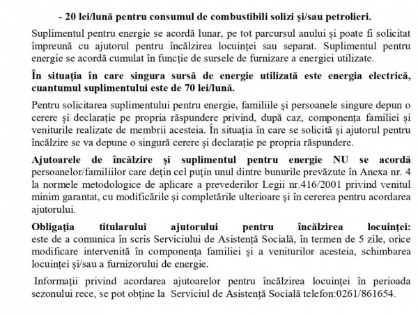 Se vor acorda ajutoare pentru încălzirea locuinței și suplimente de energie. Condiții de obținere