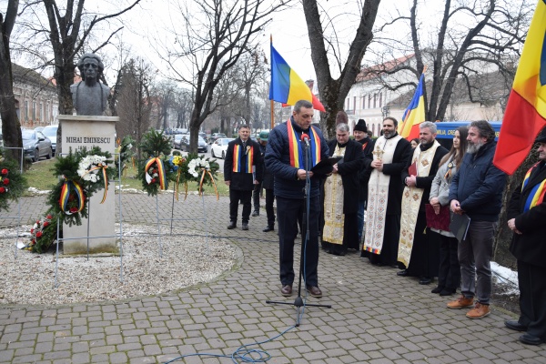 S-au rostit alocuțiuni de către Bianca Șorian, care a citit mesajul prefectului Radu Roca, deputatul Adrian Cozma, Bogdan Georgescu, Daniela Ciută și Mihai Pintea, cu toții evocând personalitatea poetului național Mihai Eminescu și subliniind rolul esențial pe care îl are cultura în contextul promovării identității noastre naționale.