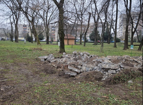 Un morman de bucăți de betoane sparte tronează în mijlocul Parcului Dendrologic Carei, arie protejată,  fără ca cineva din instituțiile abilitate a păstra statutul acestui parc  să intervină.