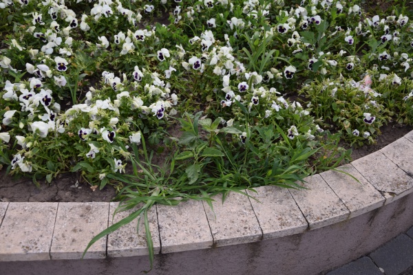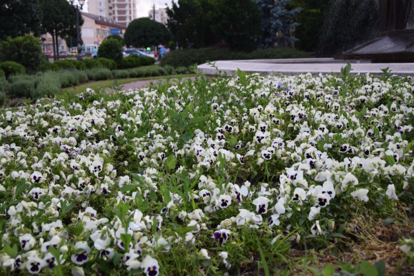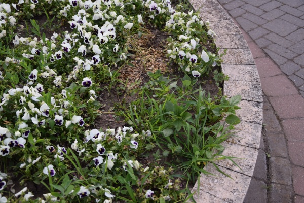 Pe locul alocat calendarului floral de altă dată sunt plantate panseluțe dar și alea sunt  năpădite de buruieni.