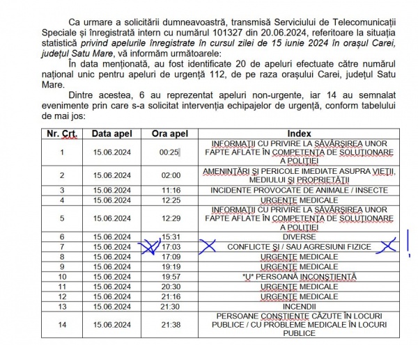 În Republica de la Carei avem câte 20 de apeluri la 112 într-o singură zi. Avem și accidente mortale de muncă mușamalizate așa că de ce nu ar fi și altele la fel de mușamalizate dacă tot are evazionistul șef atâta trecere la cei din internele locale. Doar românii independenți beneficiază de monitorizare strictă, de amenințări cu moartea, de cenzură, furturi informatice și de agresiuni fizice necercetate.