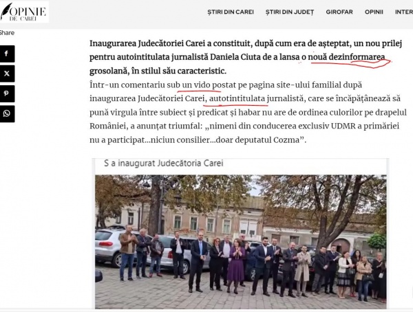 Un neica nimeni de la primăria Carei, pe numele său Szasz Lorand, care se târăște pe la ușile politicienilor corupți pentru o coajă de pâine pentru că nu e  în stare să se descurce singur, face sluj în fața angajatorilor săi și vorbește de dezinformare  denigrând  familia Ciută care este independentă financiar și face producție  în Carei de peste 32 de ani. Taman analfabetul funcțional Szasz vorbește de dezinformare, una din specialitățile sale alături de smulsul de buruieni de pe domeniul public. Șovinul Szasz nu știe să facă diferența între beneficiu și a beneficia sau să interpreteze o balanță sau o declarație de avere.
