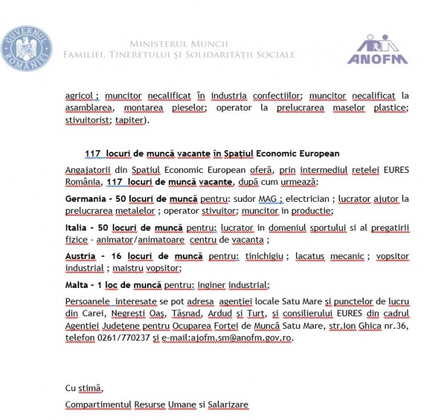Datele înregistrate de Agenția Națională pentru Ocuparea Forței de Muncă arată că, în primele zece luni ale anului 2024, 543.440 de locuri de muncă au fost declarate vacante cele mai multe pentru meserii precum curierat, manipulare mărfuri, muncitori în construcții și de asamblare/montare piese.