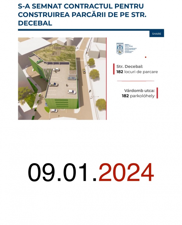 În ianuarie 2024, Primăria Satu Mare anunța cu surle și trâmbițe semnarea contractului pentru parcarea supraetajată de lângă magazinul Someșului. Au trecut 15 luni de atunci, termenul fiind de 24 de luni, dar lucrările nici măcar nu au început!