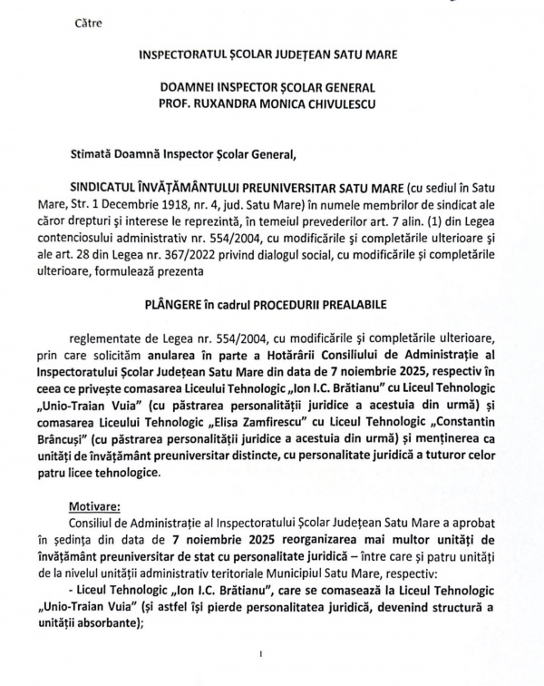 Graba este cu atât mai suspectă cu cât încă nu s-a soluționat litigiul prin care Sindicatul Învățământului Preuniversitar încearcă să blocheze această inițiativă susținută de conducerea Primăriei Satu Mare, în ciuda protestelor profesorilor și elevilor din aceste școli.