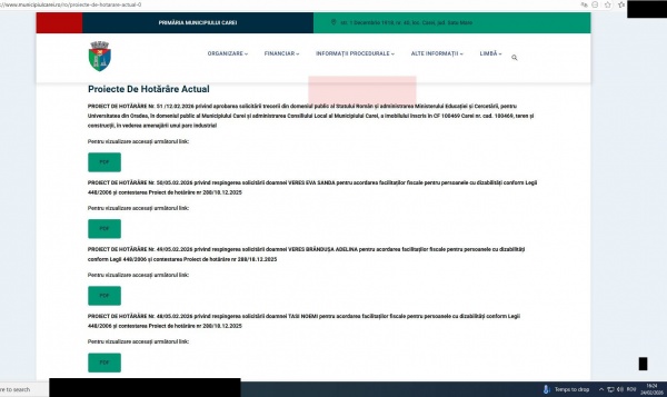 Interes scăzut al consilierilor locali pentru ședința extraordinară a CL Carei de azi, 24 februarie 2026, ora 14,00. Au participat doar 13 din cei 19 consilieri, nici viceprimarul nu a fost prezent. Poate cei 6 consilieri absenți au ales să sărbătorească Dragobetele alături de persoanele iubite.