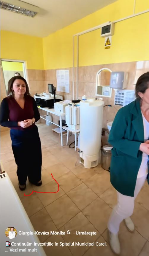 Primarul Careiului a intrat în incinta laboratorului, a Spitalului Municipal, fără acei papuci de unică folosință așa cum se impune tuturor vizitatorilor. Probabil simpla prezență a dânsei sperie toți microbii.