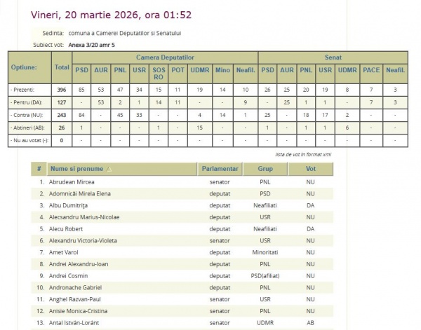 Aici este lista întreagă cu situația voturilor pentru eliminarea DISCRIMINĂRII ROMÂNILOR!
