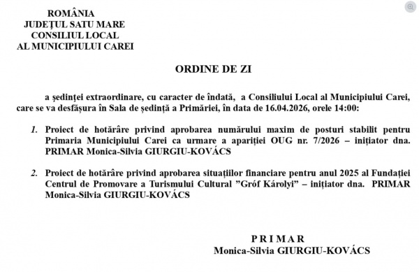 Doar simpla citire a celor trei proiecte de pe Ordinea de Zi a ședinței CL Carei de astăzi, 16 aprilie 2026, a avut un efect devastator asupra aleșilor locali. Nici măcar unul dintre ei nu a mai fost în stare să scoată vreun sunet. Au amuțit cu toții.